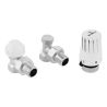 Wysokiej jakości zestaw termostatyczny do podłączenia urządzenia grzewczego do instalacji oraz precyzyjnego ustawienia temperatury w pomieszczeniu. Zestawy termostatyczne występują w wersji prostej jak i kątowej. W skład zestawu wchodzi głowica termostatyczna, zawór grzejnikowy oraz zawór odcinający.